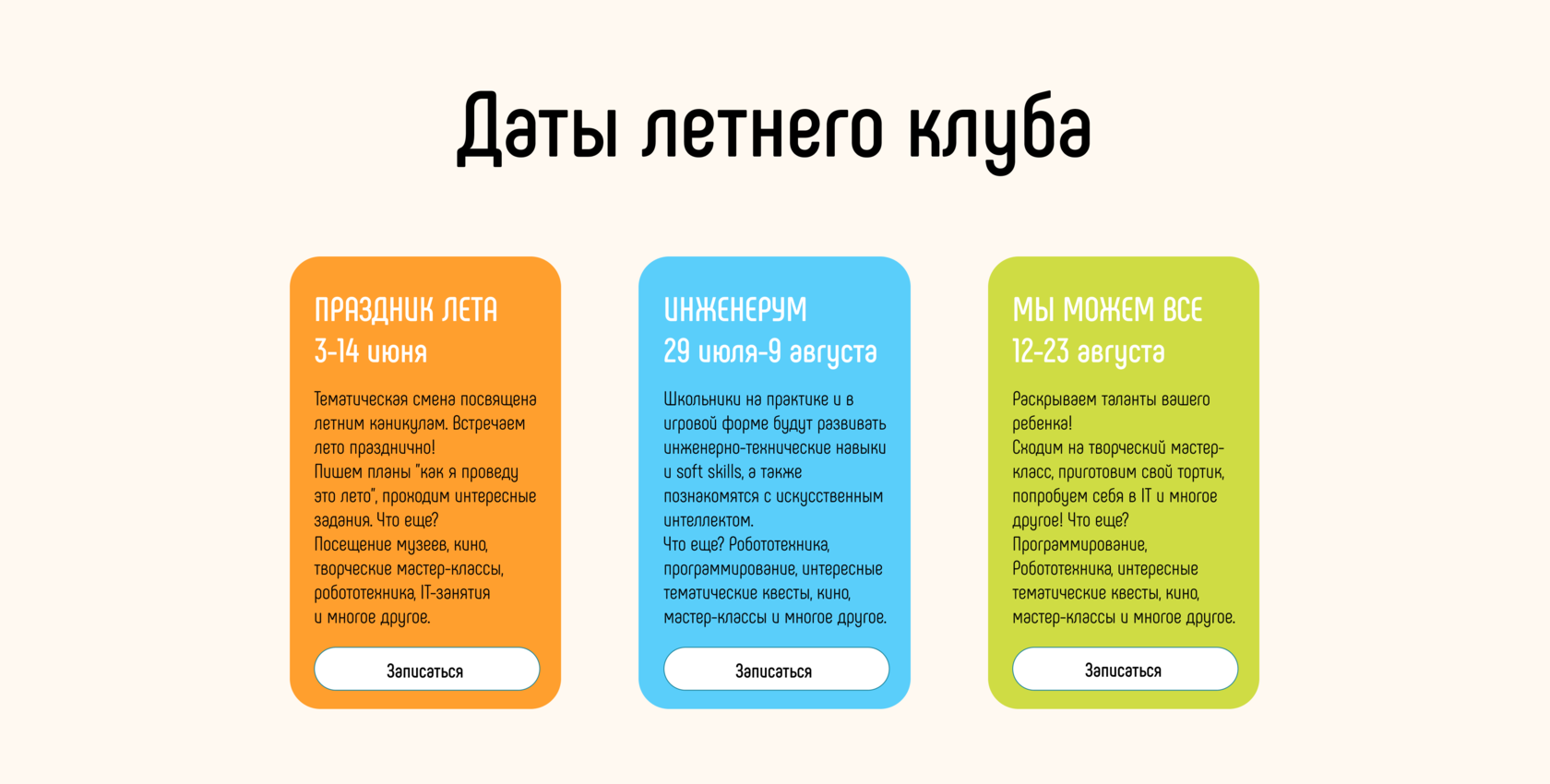 Каждый день у нас стоят: либо выездные мероприятия, либо мастер-классы, либо спортивные игры.
